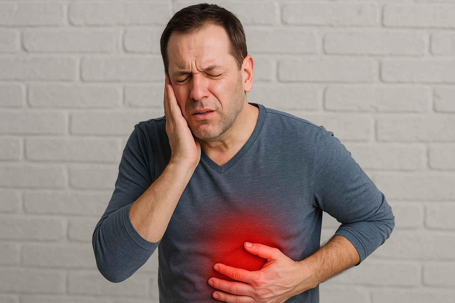 - 복통: 주로 상복부(명치)나 우상복부에서 나타나는 통증