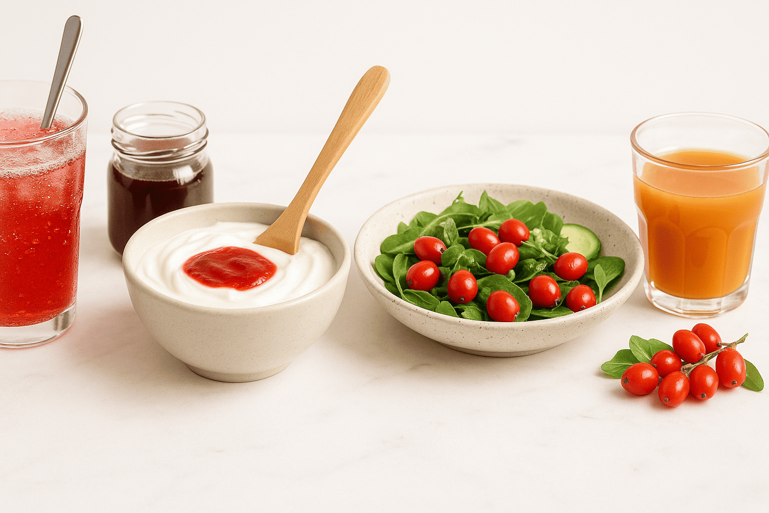 - 샐러드에 생 보리수 몇 알 추가해 영양과 색감 UP