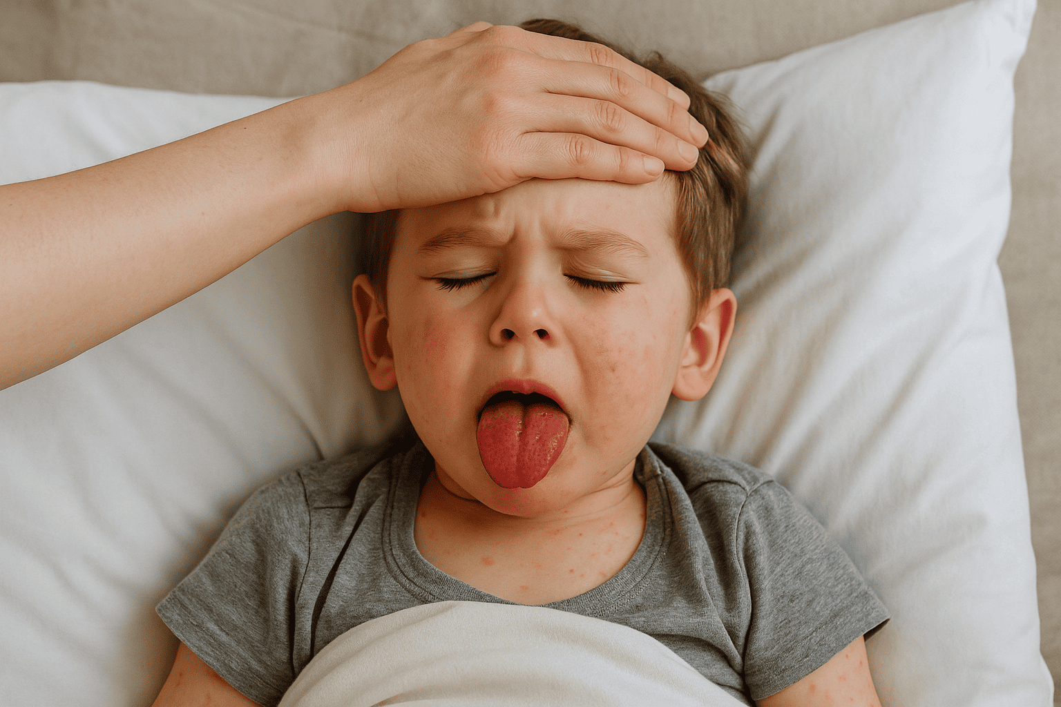 📌 성홍열은 감기와 비슷하지만 딸기혀와 발진이 있는 것이 특징입니다. 아이가 고열과 함께 이런 증상을 보이면 병원 진료가 필요합니다.