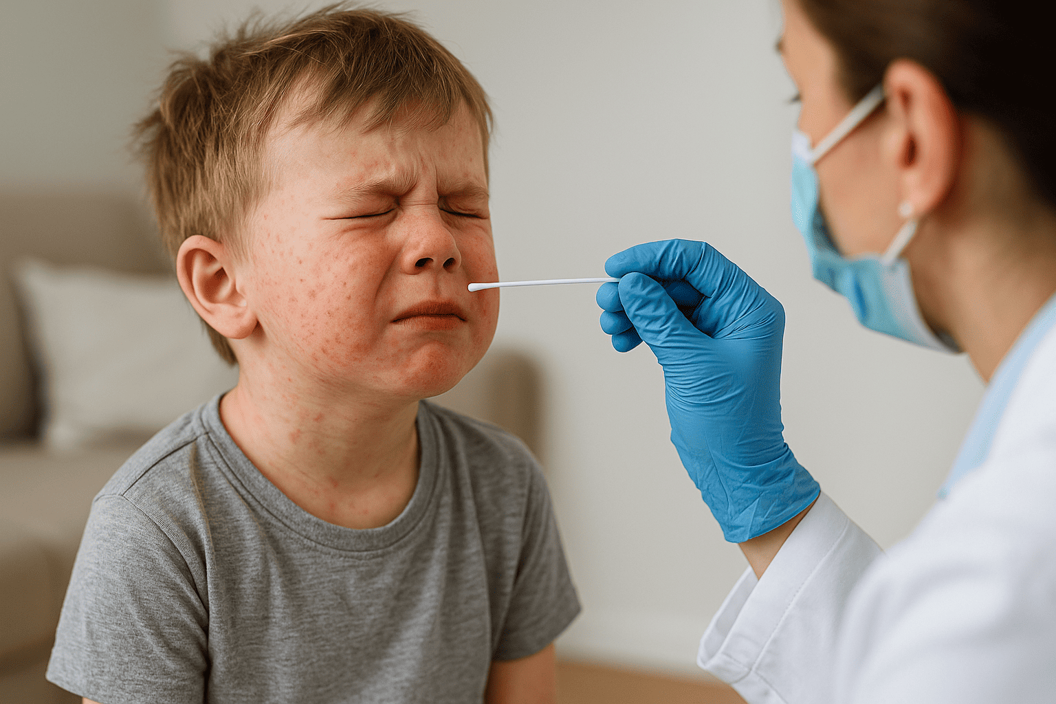 성홍열이 의심되면 병원에서는 목 상태 확인 → 신속항원검사(RAT) → 필요시 혈액검사 순서로 진단이 진행됩니다.