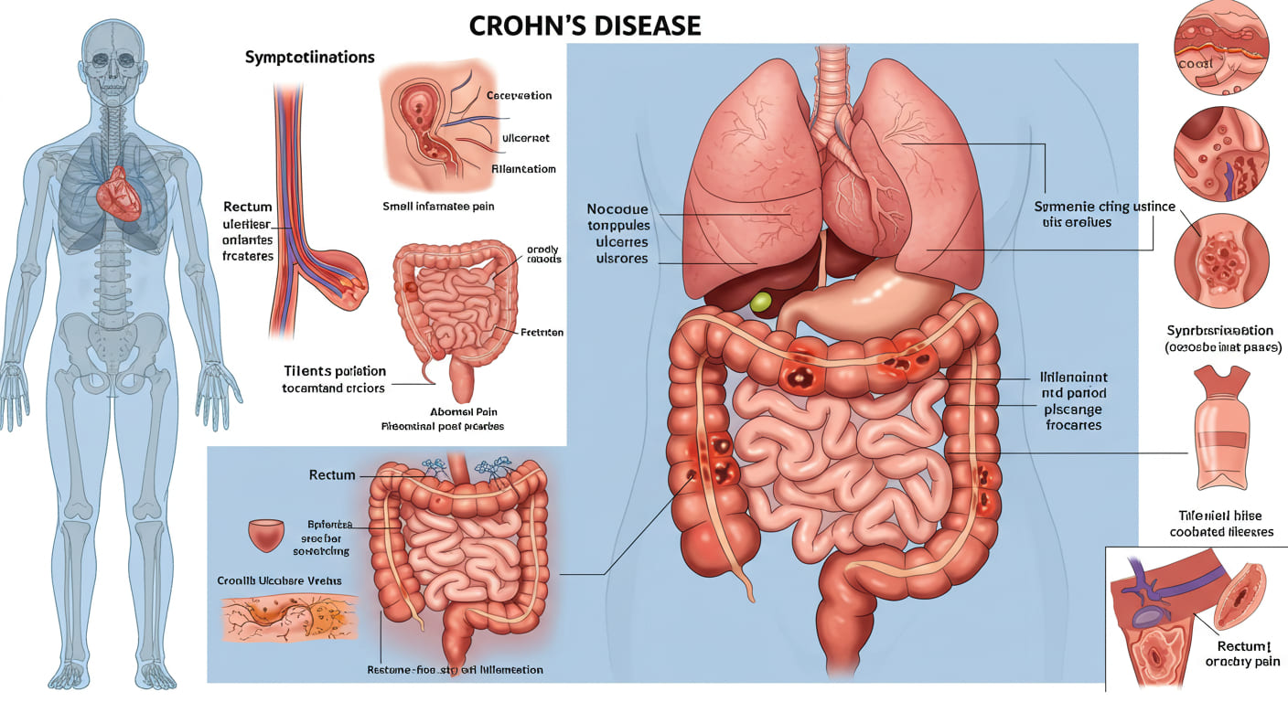 크론병(Crohn’s Disease)은 소화관 전체에 걸쳐 만성 염증을 일으키는 자가면역성 질환으로, 주로 소장과 대장에서 흔히 발생합니다. 하지만 입부터 항문까지 소화기관 전체에 영향을 줄 수 있는 복합적인 염증성 장질환입니다.