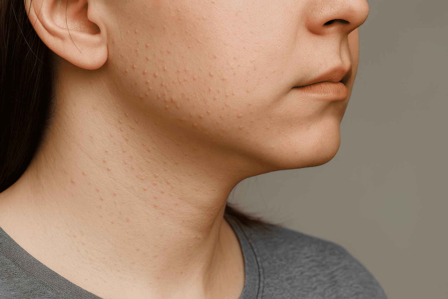 📌 육안상으로는 잡티나 모낭염처럼 보이기도 하며, 여드름과 혼동되기 쉬워요.