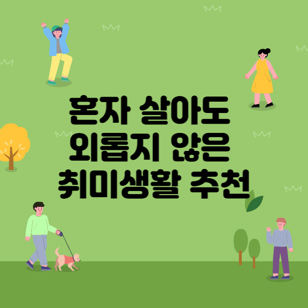 오늘 소개한 취미들은 모두 혼자이기에 더 몰입할 수 있고, 내 속도로 즐길 수 있는 활동들입니다. 시작이 어렵다면, 그냥 ‘하고 싶은 것 하나’를 골라 10분만 투자해 보세요. 그게 바로 ‘나를 돌보는 습관’의 첫걸음입니다.