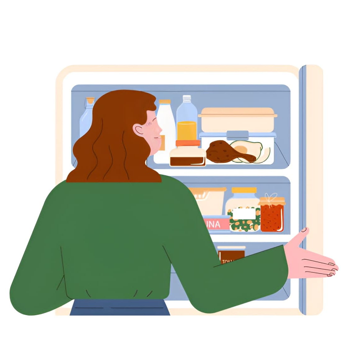 자주 사용하는 식재료는 가장 손이 잘 닿는 위치에, 가끔 쓰는 것들은 아래쪽이나 구석에 배치하세요. 자주 쓰는 반찬, 우유, 커피 크림, 물병 등을 문 쪽이나 중간 선반에 배치하면 동선이 편리해지고 사용성도 높아집니다.